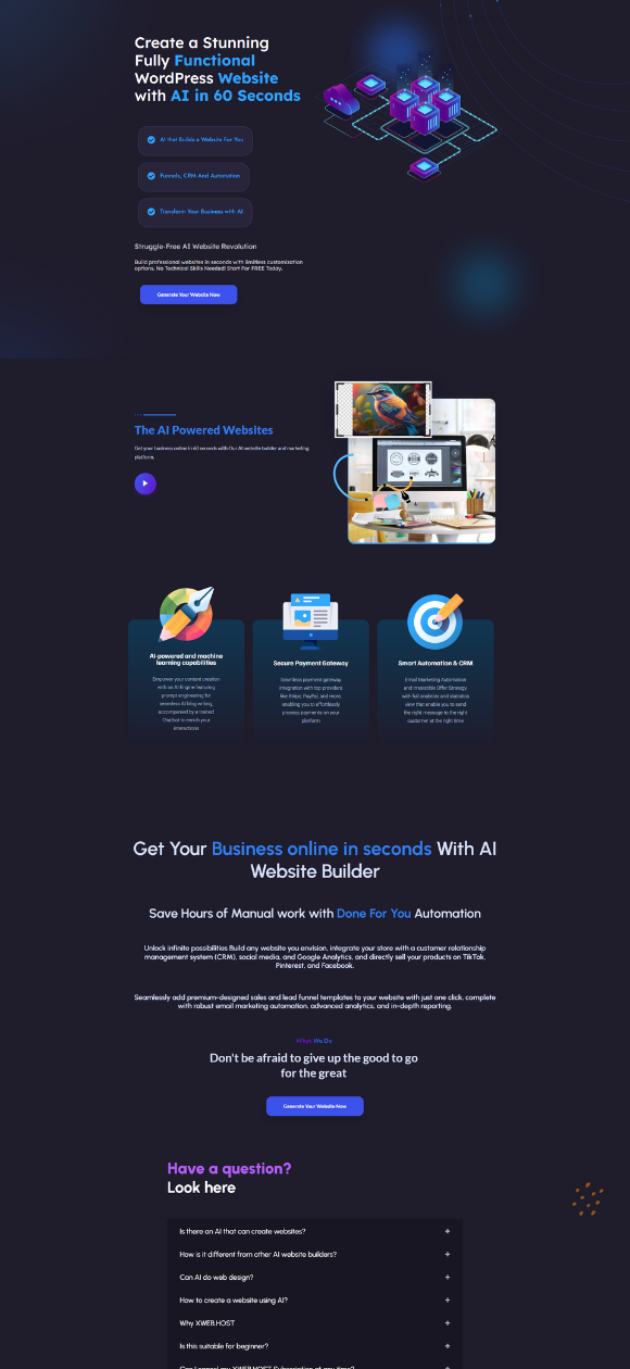 Harnessing the power of AI to Create Stunning WordPress Website in 60 Seconds. (Cloud hosted and managed for You)